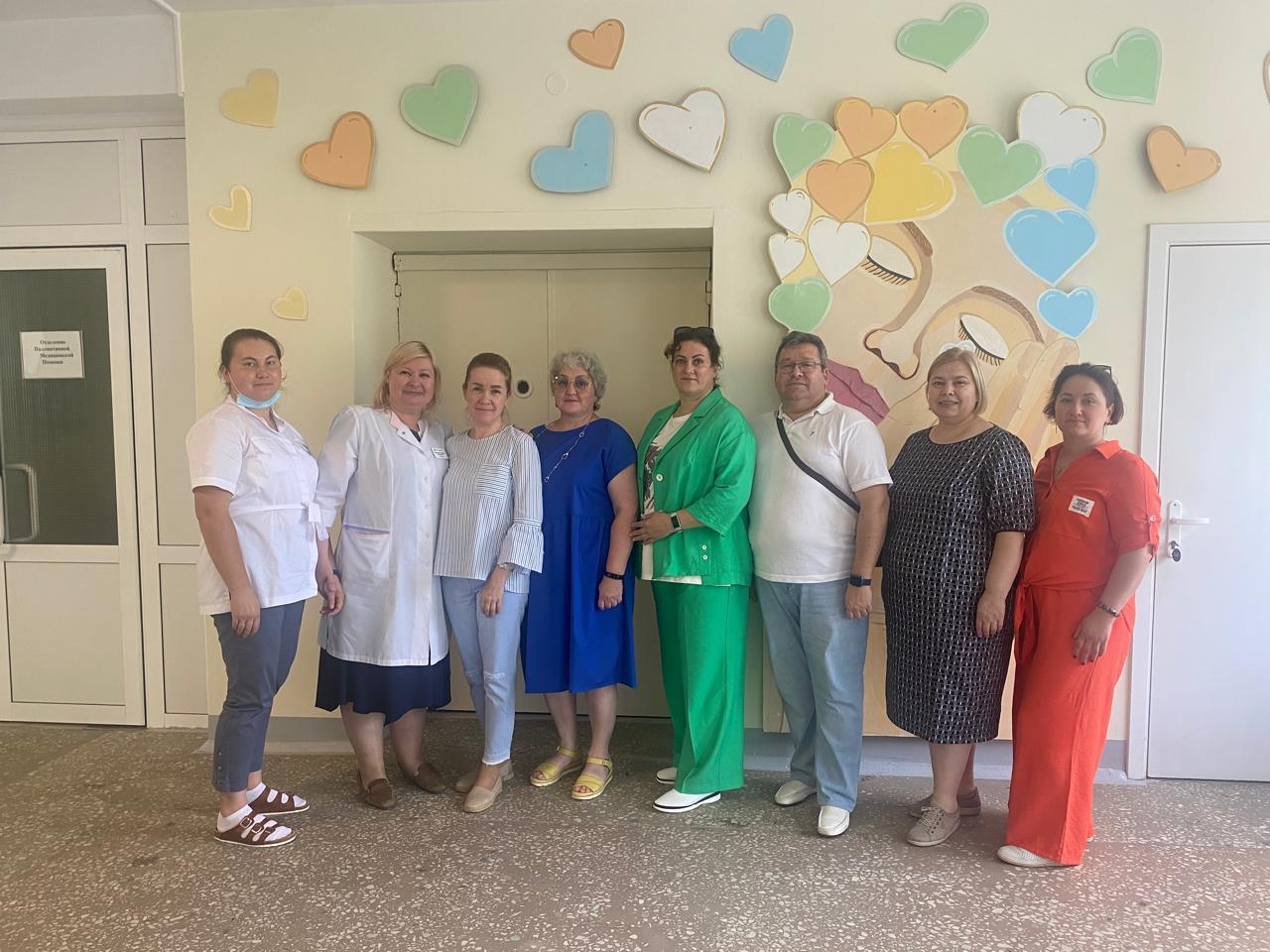 В состав делегации вошли заместитель министра здравоохранения региона Ирина Кондратьева, главный внештатный специалист-онколог Минздрава Коми Андрей Галин, главный внештатный специалист по оказанию паллиативной помощи детям Елена Тихонова, заведующая отделением выездной паллиативной помощи Сыктывкарской детской поликлиники № 3 Оксана Гайдай, директор Республиканского Кочпонского психоневрологического интерната Юлия Бездижий и врач по паллиативной помощи, заведующая отделением милосердия Республиканского Кочпонского психоневрологического интерната Анастасия Райхерт.