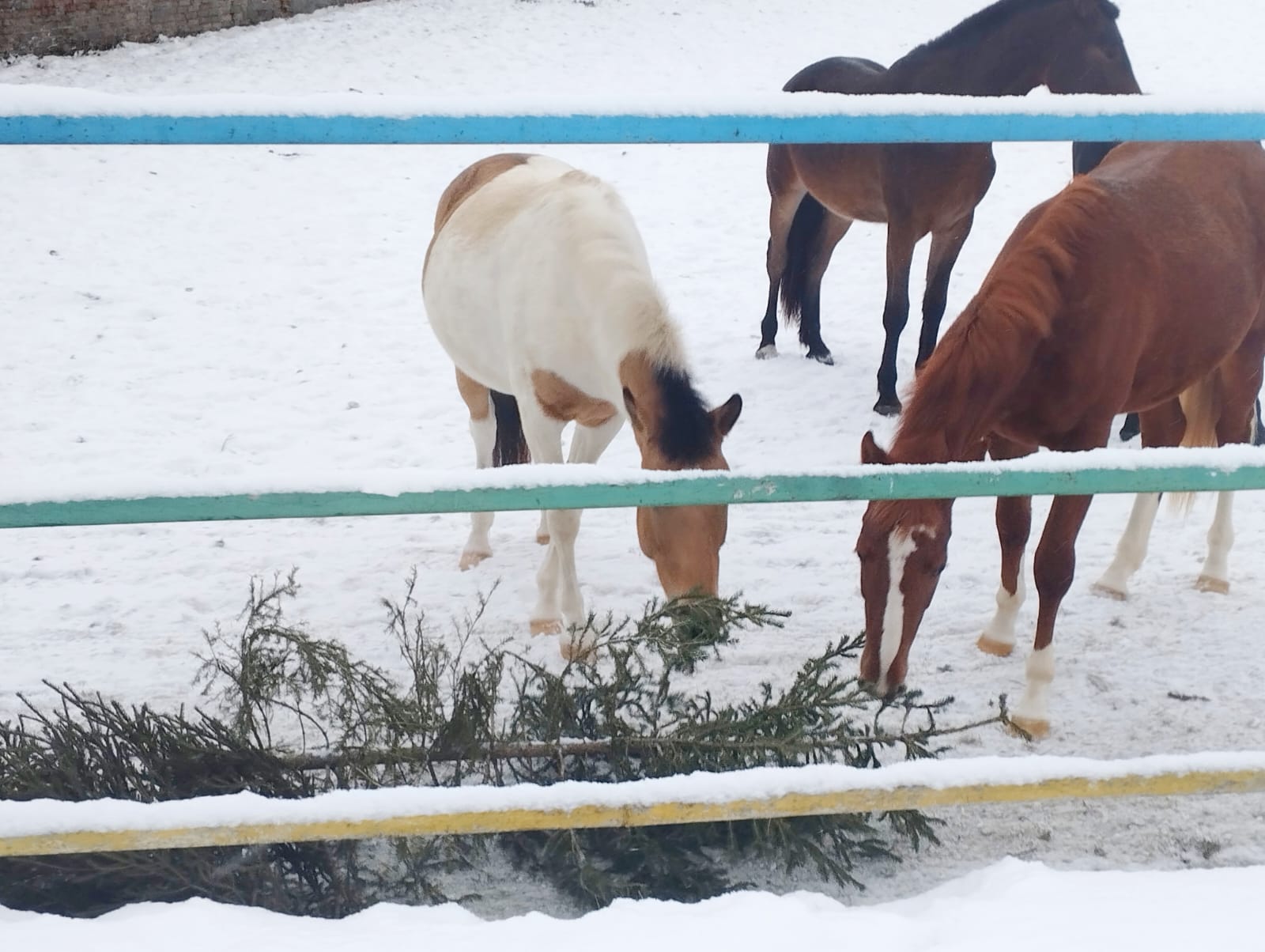 Лошади и пони конноспортивных центров "Планета" в Шудаяге и «Фортуна» в Усть-Ухте получили ёлки, собранные на контейнерных площадках Ухты, Сосногорска и Ижмы. Зимой животные особенно нуждаются в витаминах, минералах и аминокислотах, а в хвое этих полезных компонентов очень много. Сотрудники Регионального оператора Севера кроме елочек привезли и несколько мешков моркови - любимого лакомства лошадей.