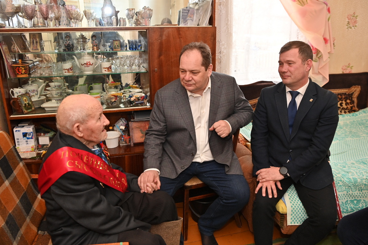 Врио Главы Республики Коми навестил фронтовика из посёлка Заозерье Сысольского района, чтобы поздравить его от имени Президента России Владимира Путина и от себя лично с 80-летием Победы.