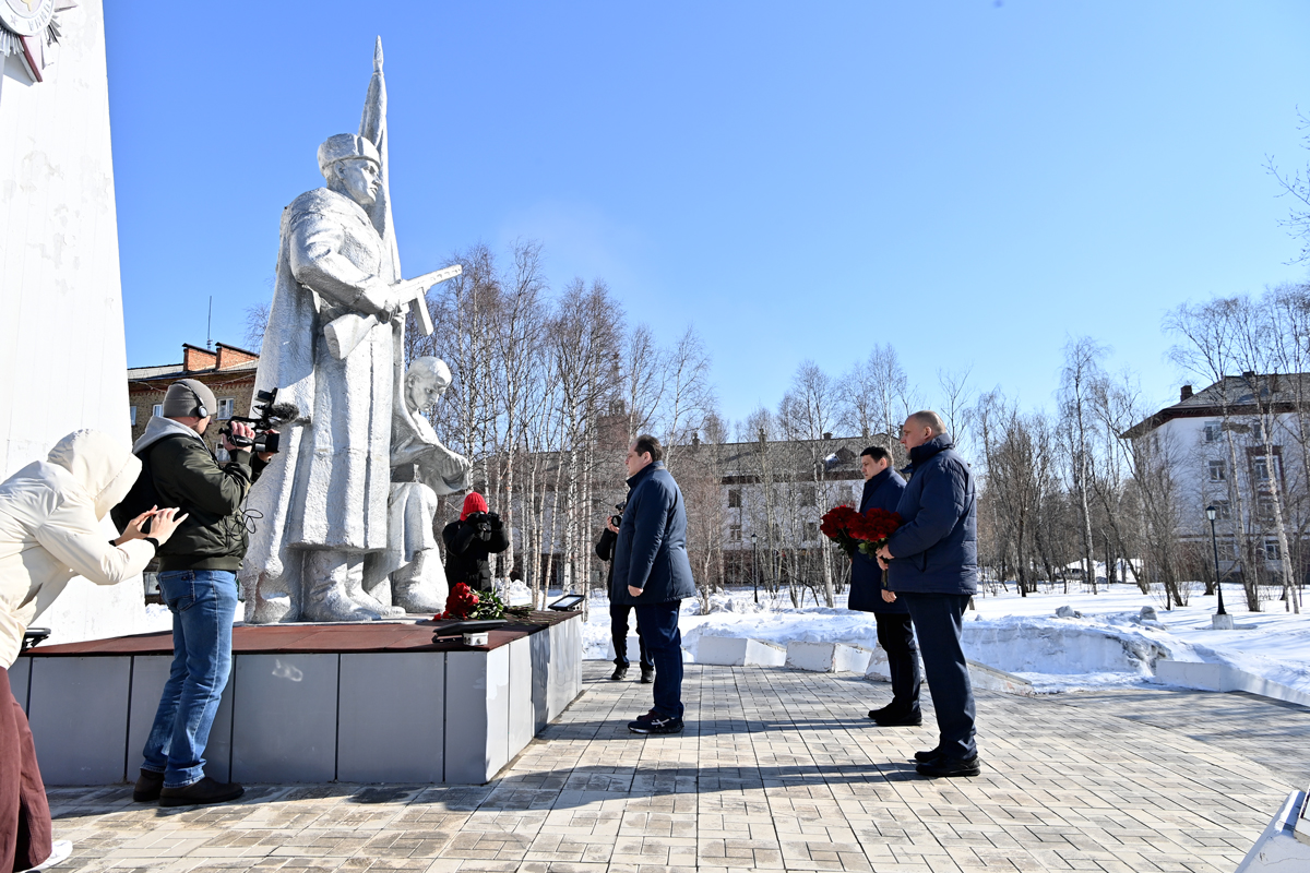 Во время рабочей поездки в Инту врио Главы Республики Коми возложил цветы к Монументу славы «Клятва».