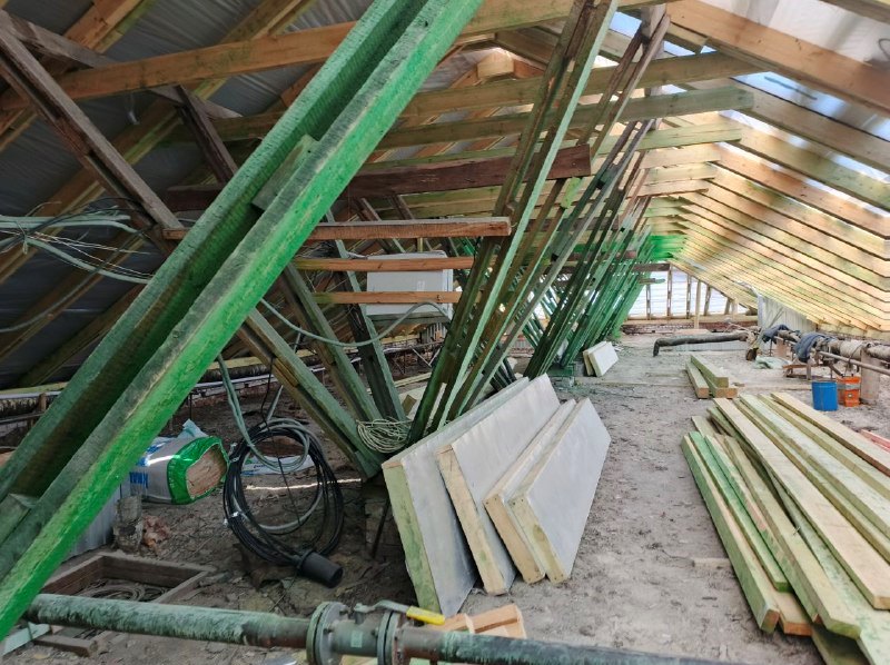 В ходе ремонта крыши выполнена замена шиферного покрытия на профлист, установлены ограждения и системы снегозадержания, утеплено чердачное перекрытие и производен ремонт вентиляционных шахт.