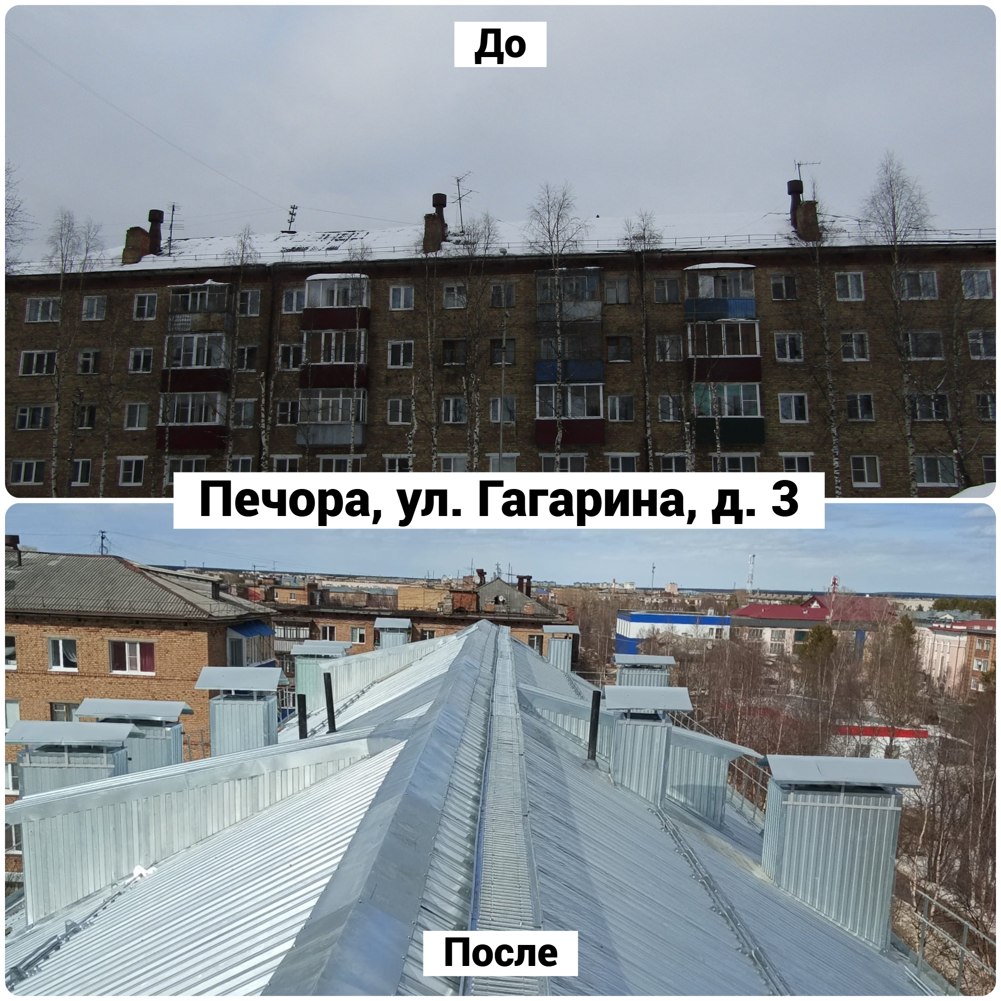 Фонд капитального ремонта многоквартирных домов Республики Коми завершил ремонт крыши в доме № 3 по улице Гагарина в городе Печоре. Дом 1963 года постройки, общая площадь 2 779.71 кв. м.