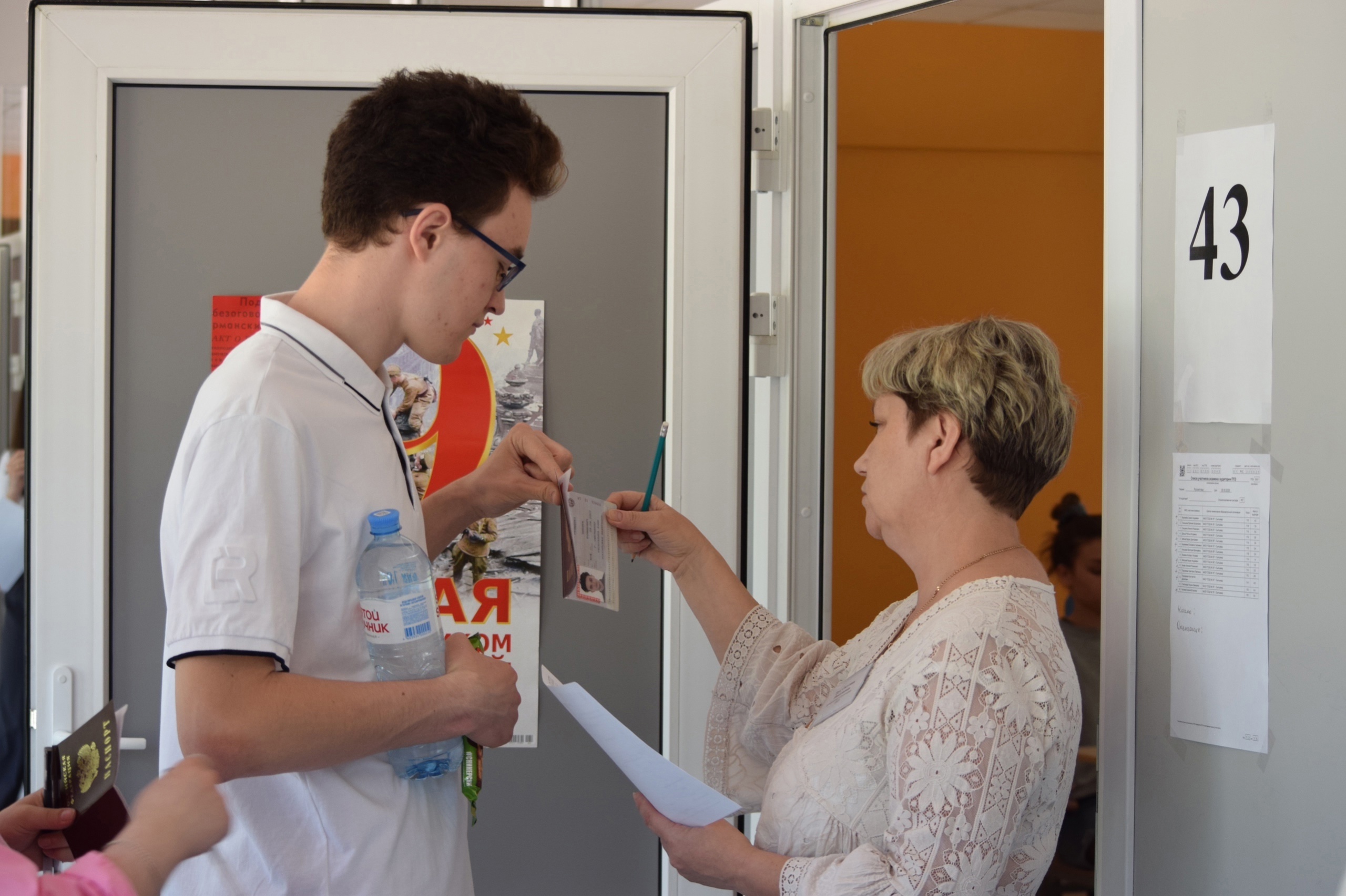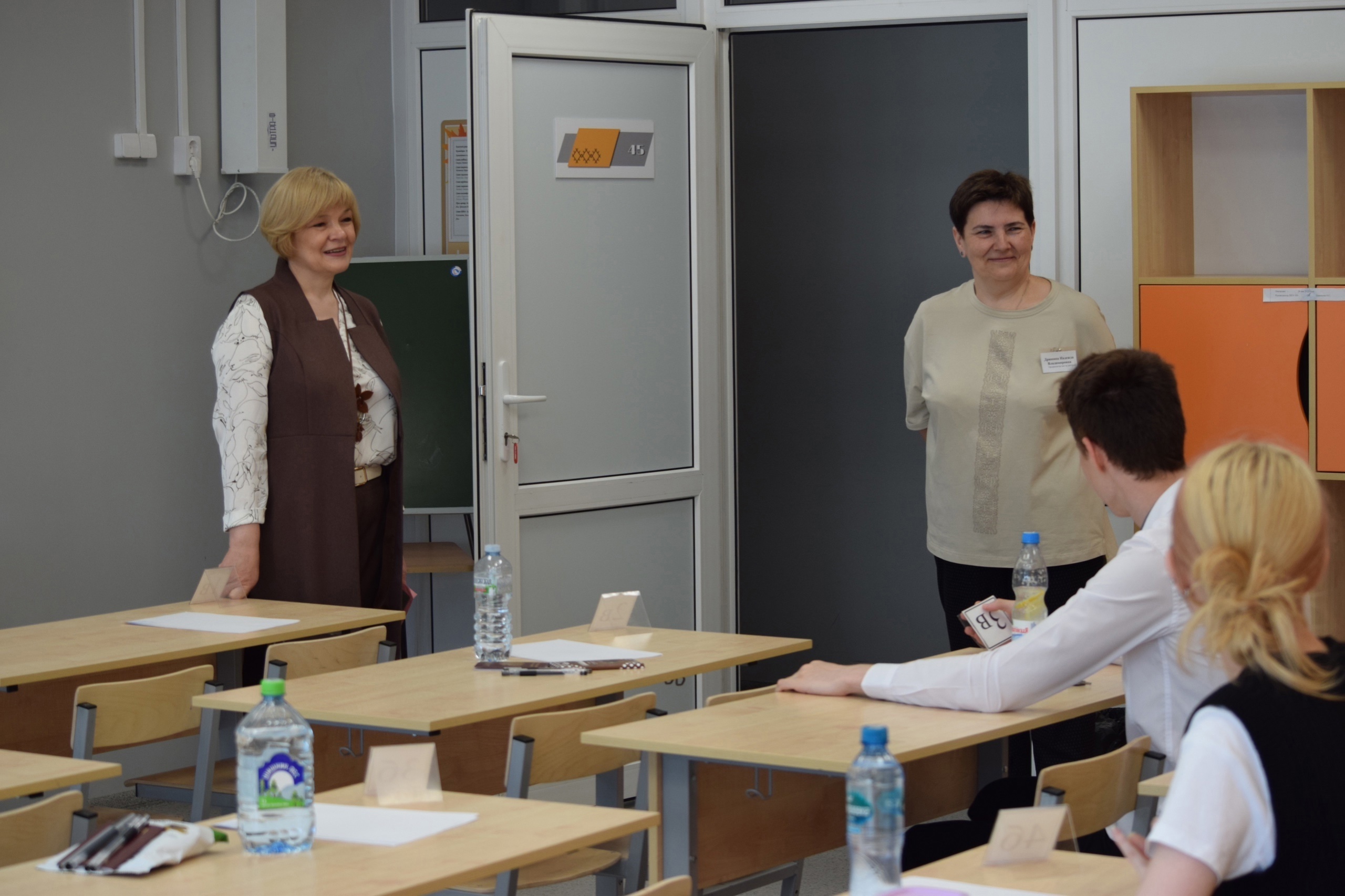 Заместитель руководителя администрации – начальник управления образования администрации МО ГО «Сыктывкар» Ольга Юрьевна Бригида лично посетила пункт проведения экзамена в сыктывкарской школе №36 им. С.В. Кочева. На входе – обязательная проверка документов и личных вещей, организаторы приветливо встречают выпускников, помогают найти нужное помещение и напоминают о правилах поведения во время экзаменов.