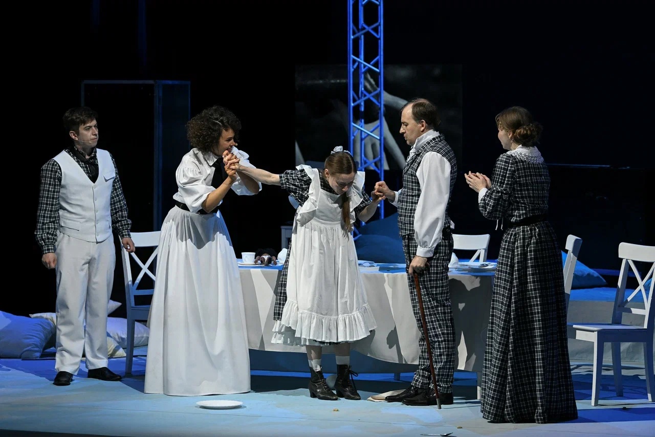 В Международный день защиты детей Саровский театр драмы показал камерный спектакль Антона Морозова «Петрополь. Часть I. Шинель» по произведениям Николая Гоголя. Режиссёр взял знакомые каждому со школы