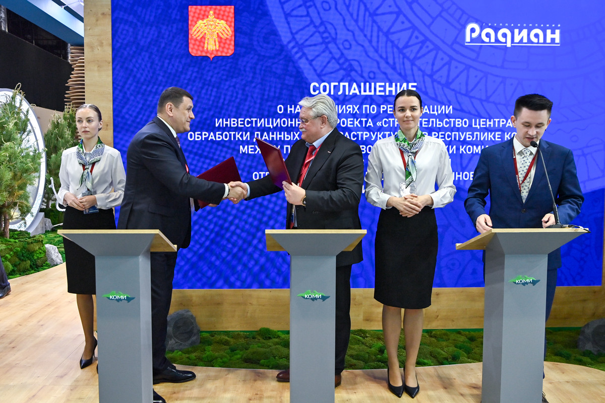 На площадке 28-го Петербургского международного экономического форума Председатель Правительства Республики Коми Дмитрий Братыненко и Председатель совета директоров ООО ПО «РАДИАН» Валерий Труфанов договорились о строительстве в регионе центра обработки данных.
