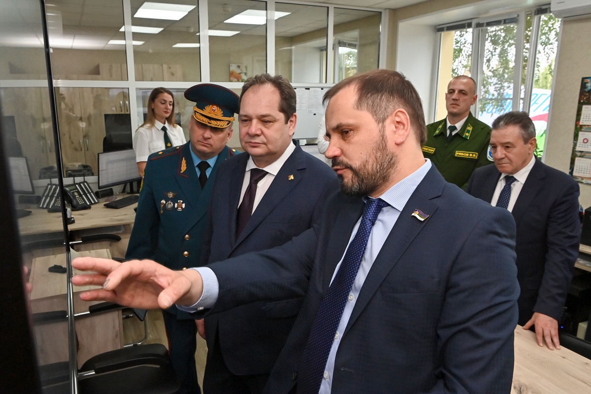 В региональной диспетчерской службе глава региона оценил возможности информационно-аналитической системы «Лесные пожары». Министр природных ресурсов и охраны окружающей среды Роман Полшведкин отметил, что система была разработана специалистами центра в 1999 году, и каждый год эта система совершенствуется.