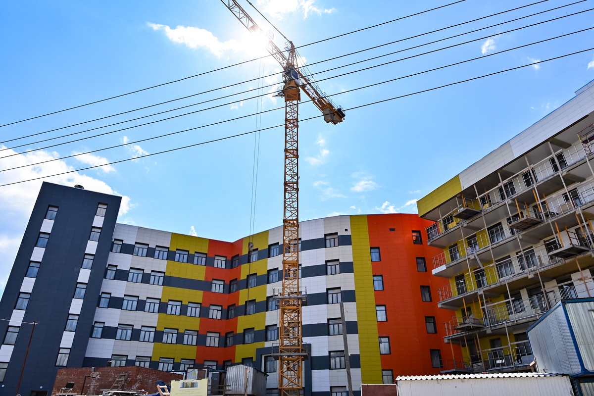 Общая техническая готовность инфекционной больницы – 87,4%. Выполняются устройство системы вентиляции и монтаж оборудования, монтаж внутреннего водопровода, электромонтажные работы, кладка внутренних перегородок, монтаж системы отопления, монтаж вентилируемого фасада, отделочные работы, заполнение оконных и дверных проёмов, монтаж лифтового оборудования, устройство монолитных ж/б крылец и входных групп, монтаж оборудования снабжения кислородом, монтаж дезинфекционной камеры, благоустройство территории.