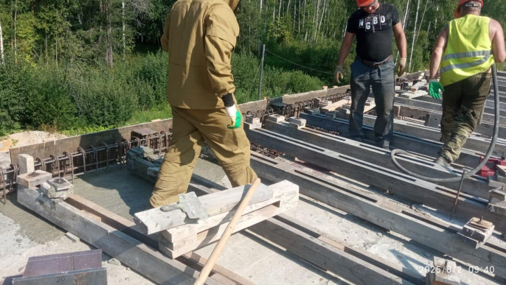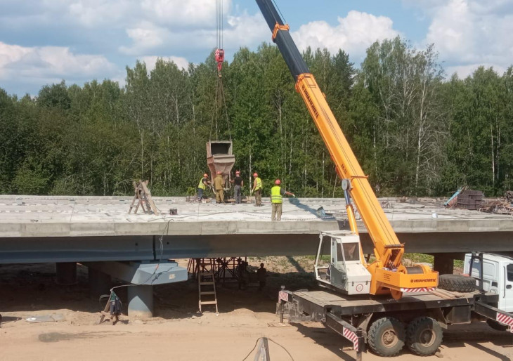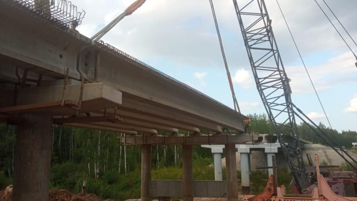Строительство нового моста через реку Лемью ведется в соответствии с утвержденным графиком. На текущий момент готовность объекта оценивается в 55%.