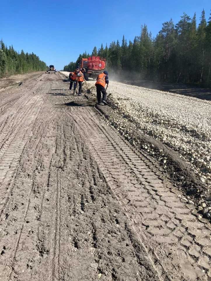 Выполнение работ по капитальному ремонту участка Каджером – Железнодорожная станция «Кожва» запланировано на период с 2025 по 2027 годы. В настоящее время подрядчик уже приступил к подготовительным работам: ведется расчистка полосы отвода, восстановление и отсыпка земляного полотна и откосов, а также устройство основания дорожной одежды.