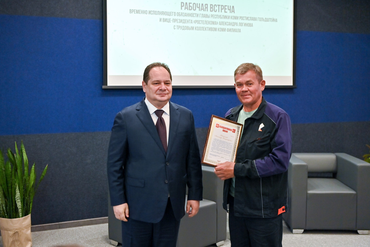 Встречу открыл вице-президент – директор макрорегионального филиала «Северо-Запад» ПАО «Ростелеком» Александр Логинов. Он отметил, что многие годы работал с Ростиславом Гольдштейном на благо развития Дальнего Востока и выразил готовность продолжить сотрудничество на территории Коми.