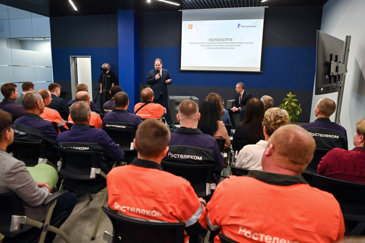 Руководитель республики провёл встречу с коллективом Коми филиала компании ПАО «Ростелеком». Темами обсуждения стали развитие телеком-инфраструктуры, ликвидация цифрового неравенства, новые IT-проекты, реализуемые в регионе с участием компании. Также глава региона ответил на вопросы сотрудников.