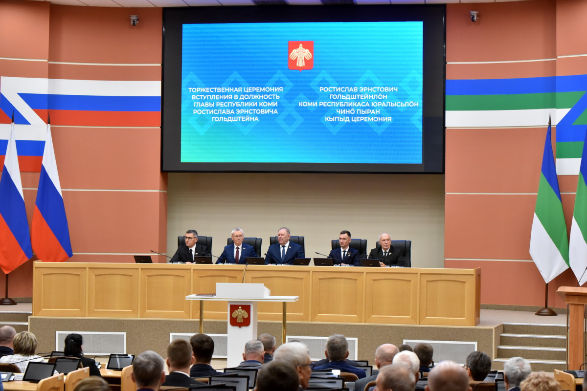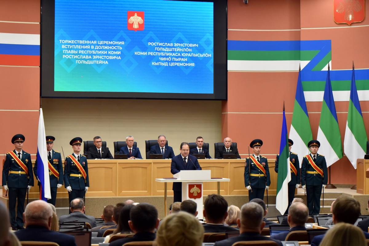 Торжественная церемония состоялась сегодня, 30 сентября, в Сыктывкаре. В соответствии с Конституцией Республики Коми, Ростислав Гольдштейн принёс торжественную присягу на коми и русском языках в присутствии депутатов Государственного Совета Республики Коми, судей Конституционного суда Республики Коми, заместителя полномочного представителя Президента РФ в СЗФО Олега Логунова и приглашённых.