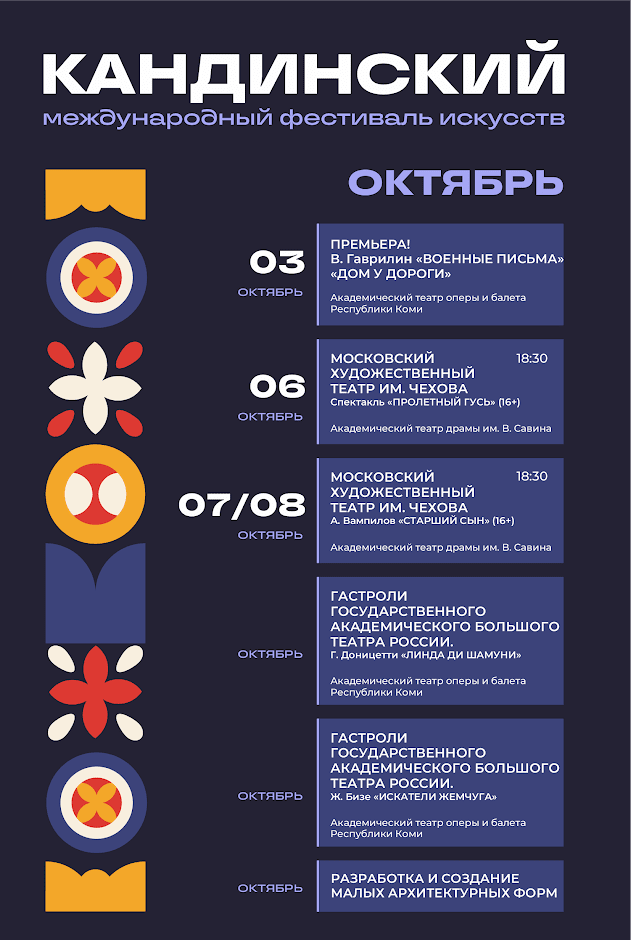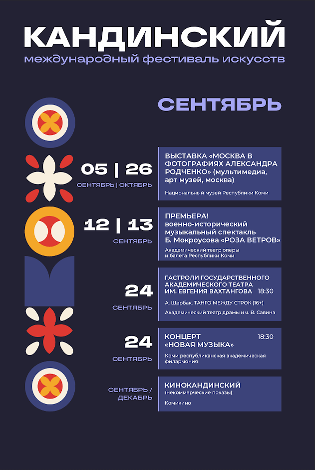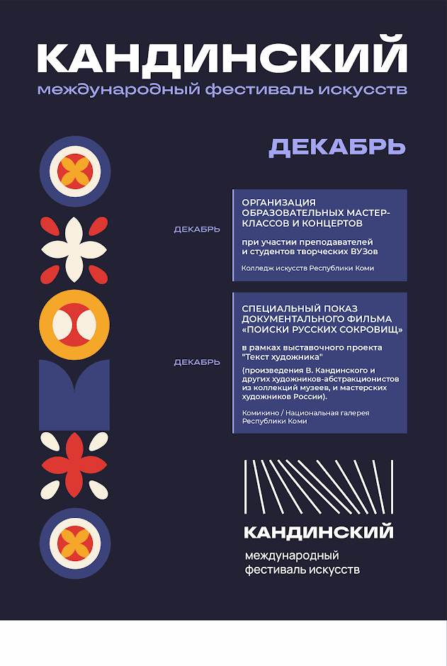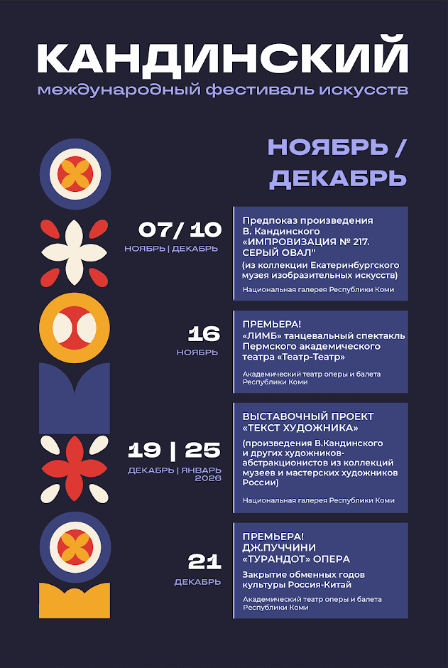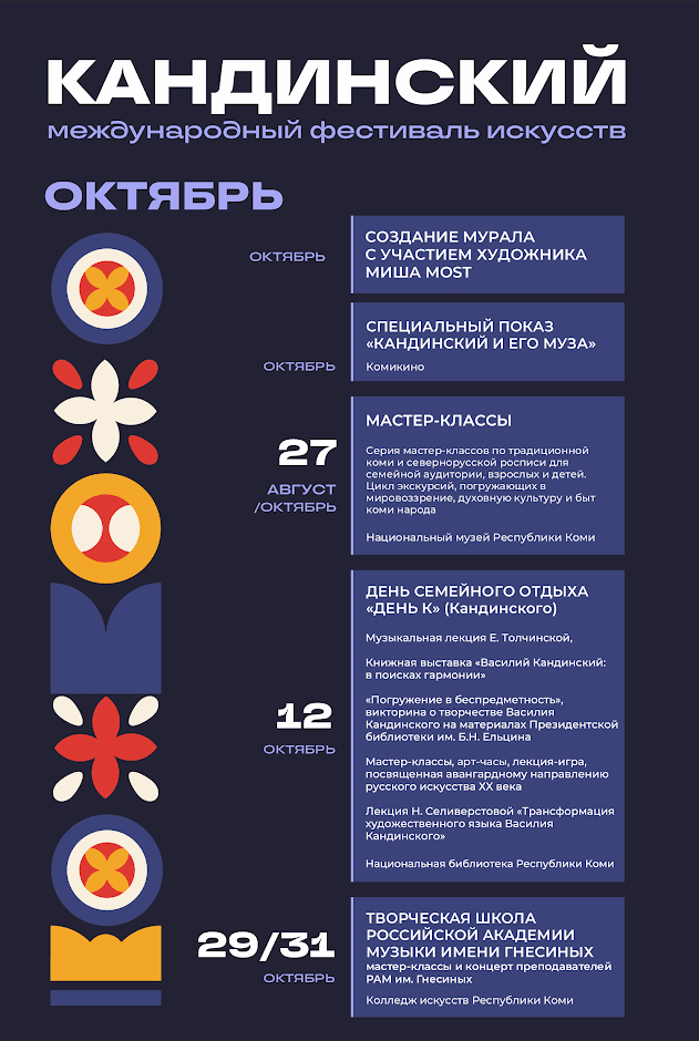 «Фестиваль «Кандинский» вдохновлён творчеством русского художника, богатым наследием Коми края и современным культурным потенциалом нашего региона. Объединив в себе весь спектр искусств, проект