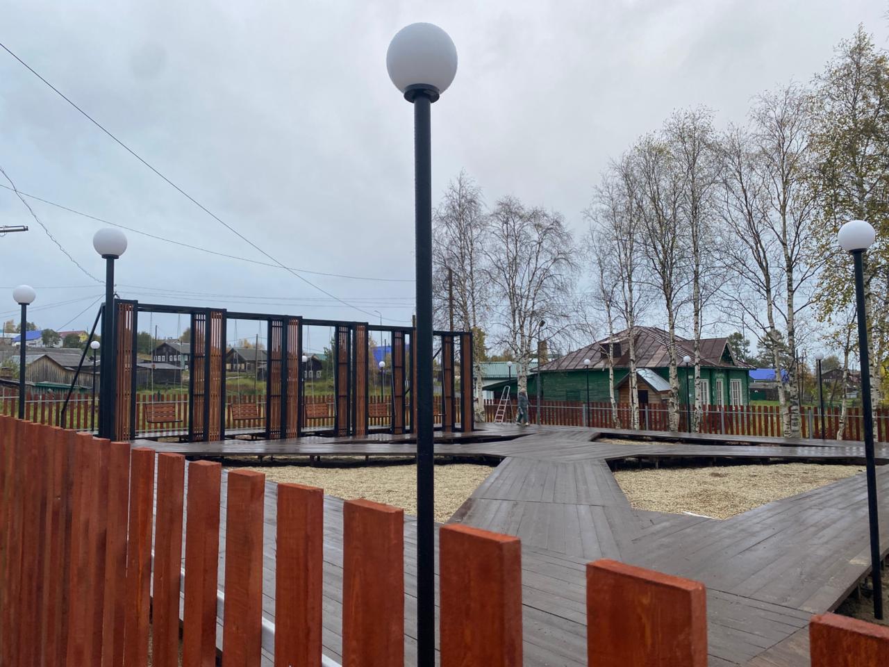 Работы по обустройству парка начались 1 июня и завершились 19 сентября текущего года. За это время были проведены работы по установке ограждения, проложены деревянные тротуары, организовано освещение, а также установлены качели и урны для мусора. Все эти элементы создают комфортные условия для отдыха и досуга местных жителей и гостей села.