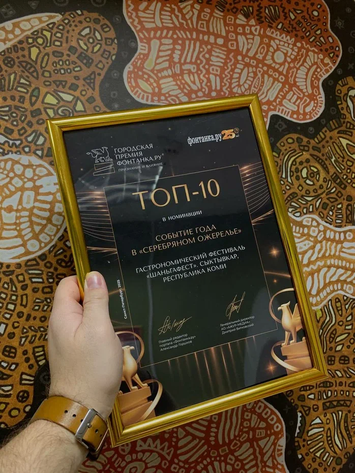 В тот же день в рамках торжественной церемонии премии «Фонтанка.ру – Признание и Влияние» Республика Коми вошла в ТОП-10 специальной номинации «Событие года в «Серебряном ожерелье» с гастрономическим фестивалем «Шаньгафест».