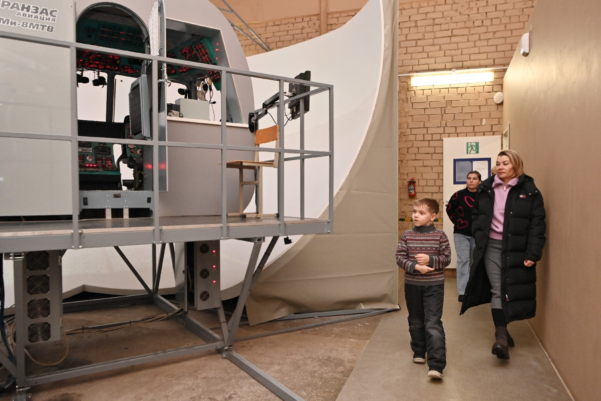 Пилот-инструктор Коми регионального центра подготовки авиационного персонала Александр Ковалёв и пилот АО «Комиавиатранс» Антон Щербинин показали Савелию, как тренируются лётчики на специальном тренажёре. Мальчик вместе с мамой совершили виртуальный полёт над Чёрным морем.