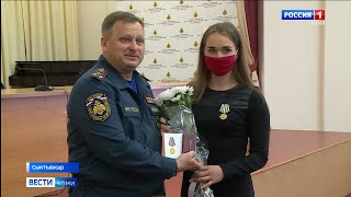 Вручение награды МЧС «За спасение погибающих на водах» Яне Маравской